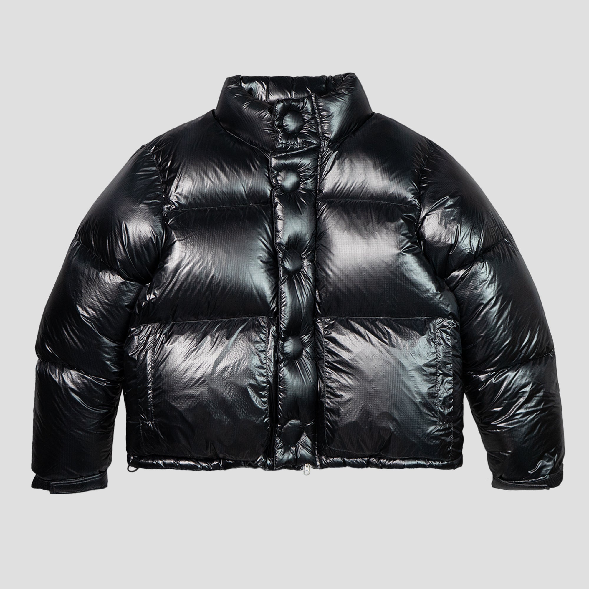 *100% Nylon / Filling - 80% Down, 20% Feather *Extra Puffy Down Jacket *Big Hand Pockets with Zipper / 1 Inside Pocket *Front Zip-up with Velcro Buttons *Velcro on Cuff *Cinch on Waist *Made in Japan