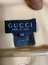 ITEM: Vintage gucci blazzer coat unbottom jacket (G206) 📝 Tag size 44 Manual Measurement (inchi) 🧥BUST 22 🧥Length 31’ 🧥WAIST 15 🧥Shoulder '15 🧥Sleeve Length 22 *All measurements are taken with the garment flat on the floor. **Please takenote for manual fit 🛠️Made in ITALY 🌈Colour see photo 👌Condition Standard Worn (Gently Used Item) *Refer photo for the best view PLEASE DON'T EXPECT IT TO BE LIKE NEW OR IN PRISTINE CONDITION. IF YOU HAVE ANY INQUIRIES, FEEL FREE TO ASK. SHIPPING DHL EXPRESS Shipping ($25-40) and it will take about 4 - 7 working days for delivery for most international orders. Please leave your phone number. Tracking number will be provided. 🔥I will combine shipping on all of my items for savings on multiple purchases. All items will be shipped out within 1 - 4 days after payment received. 🏦PAYMENT : PayPal ONLY ❌ Refund ❌Return for error size or fit **Please make sure this your best choice before buying because we care about customer satisfaction 💕 Thank you for viewing. Don't forget to follow my account and check out my other listing. ✅✅Accept Reasonable Offer Only