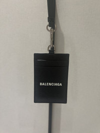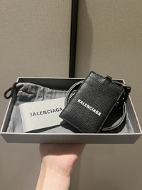Balenciaga White Logo Black Cash Card and Badge Holder