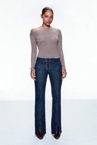 Preorder. The Amelia Top, a striped boatneck silhouette crafted with our newest and softest fabric. Perfectly paired with our classic dark wash denim. Airy, featherweight Tissue Jersey: 90% Modal, 10% Silk. Jasmine is 5'9" and wears a size S. Her measurements are: Bust-34” Waist-23.5” Hips-34”. Machine Wash Cold. Inside Out Gentle Cycle. With Like Colors. Lay Flat To Dry. Do Not Bleach. Warm Iron If Needed.