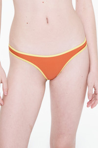 Introducing the Jo Bottom in a new fiery color. Not for the faint of heart, this swim piece offers a thong fit, crafted from swim nylon for your all swim adventures. Miaou's Matte Swim - 85% Nylon, 15% Spandex Freya is 5'9" and wears a size Small. Her measurements are: Bust-33” Waist-24” Hips-34.5” Hand Wash Cold. Lay Flat to Dry in Shade.