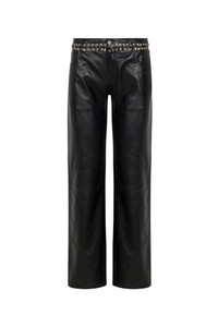 The Josephina Pant is cut low-rise in smooth lamb leather. Finished with pierced detailing and a classic five-pocket design, she’s sleek, edgy, and made to move with you. 100% real lamb leather Jasmine is 5'9" and wears a size S. Her measurements are: Bust-34” Waist-23.5” Hips-34”. Green Dry Clean Only.
