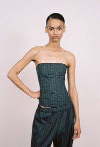 It's always Libra season. Introducing our Libra corset in Pinstripe Wool. The strapless Libra is a bit longer, offering more body hugging per square inch. She's perfect for showing off. Designed for a tight fit, true to size. Please refer to the flat lay image for product accuracy.
