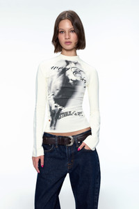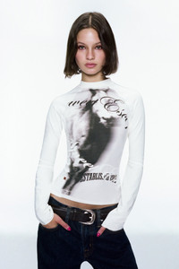 Preorder. Meet Sweet Escape — the central print of our holiday collection and a love letter to freedom. We brought her to life on the Madeline Tee, a sculpted raglan-shouldered silhouette with signature side panels that frame the body. Denim’s muse, reborn. 100% Cotton Amata is 5'7" and wears a size XS. Her measurements are: Bust-30” Waist-23” Hips-34”. Machine Wash Cold. Inside Out Gentle Cycle. With Like Colors. Lay Flat To Dry. Do Not Bleach. Warm Iron If Needed.