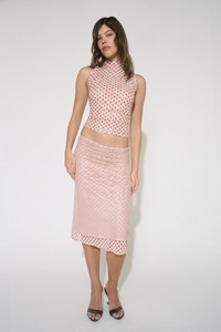 Our low-rise midi Maria Skirt returns in polka dot. She features double layered mesh and hugs your curves in all the right places. Pair with the polka dot Cam or a corset. Made with Miaou mesh: 92% Polyester, 8% Spandex Model wears a size Small. Her measurements are: Bust-32” Waist-25” Hips-34”. Green Dry Clean Only. Do Not Machine Wash.