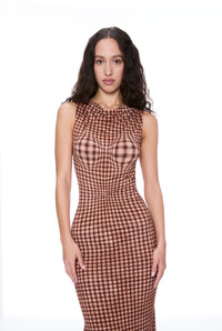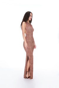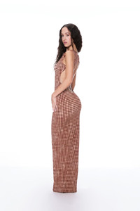 Elevate your evening with our Selena Dress in Warped Plaid. This fitted, maxi-length beauty is designed to flatter with its cinched waist and open back detailing. She's the long dress you've been waiting for. True to size. Please refer to the flat lay image for product accuracy.