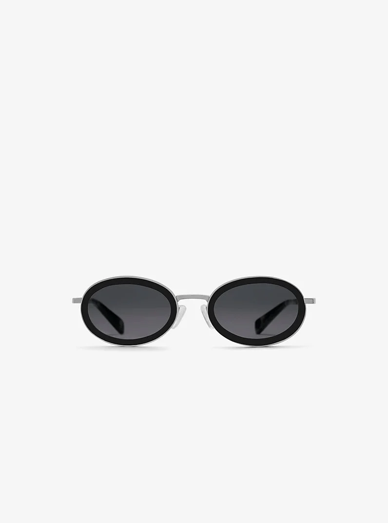 A modern metal frame and contemporary oval silhouette make our Camden sunglasses the key to fashion-forward style. They’re designed with the brand’s iconic lettering etched into the sleek arms for a minimalist finish. We think they’re the must-have shades for seasons to come. - Oval sunglasses - Metal frame - Case included - 100% UV protection - Imported - Style # MK-9053