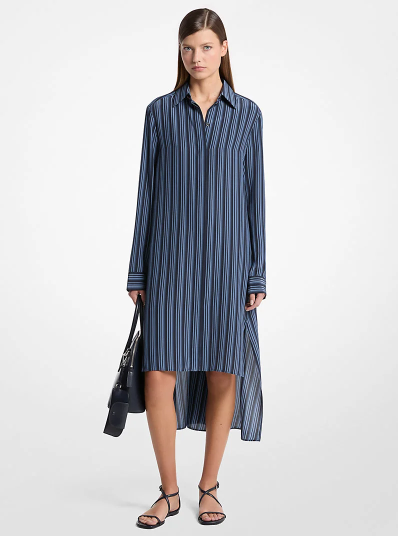 Graphic Striped Crepe de Chine High-Low Shirtdress