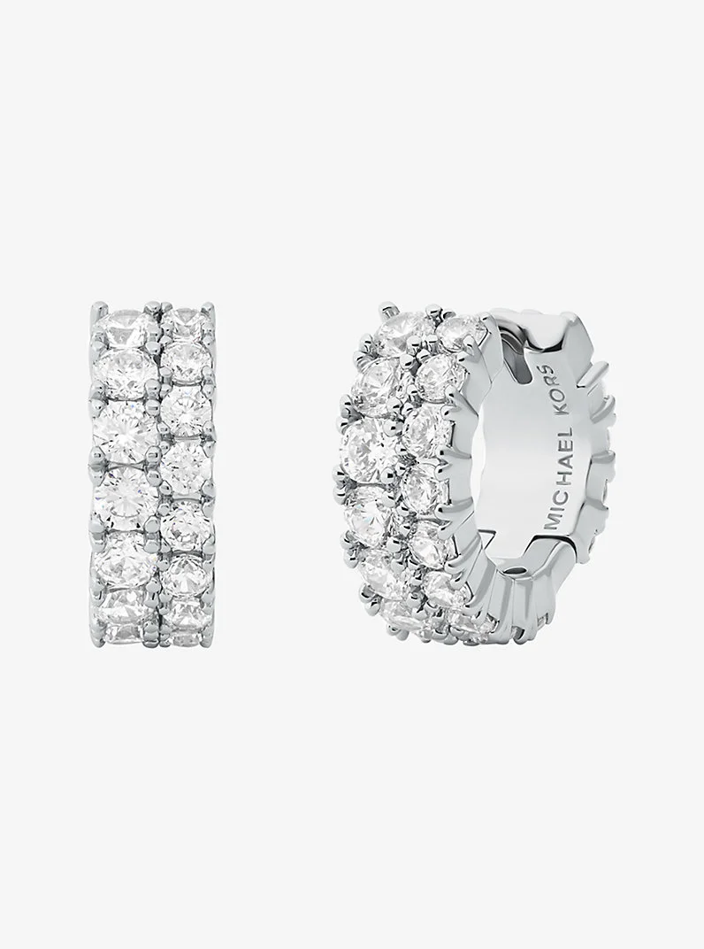 These huggie earrings approach timeless style with a touch of contemporary. The durable brass design is set with two rows of cubic zirconia, catching the light no matter where you turn. Reach for them on a night out—the way they sparkle sets the tone for any occasion. - Hoop earrings - Gold-tone brass - Cubic zirconia - 0.18”W X 0.53"L - Lever back - Imported - Apply perfume and cosmetics prior to putting on your jewelry. To clean your jewelry, wipe with the soft buffing cloth provided. Keep your jewelry away from moisture as it promotes tarnish. We recommend storing your jewelry in a clean, dry place, such as the pouch that the product comes in. - Style # MKJ8518