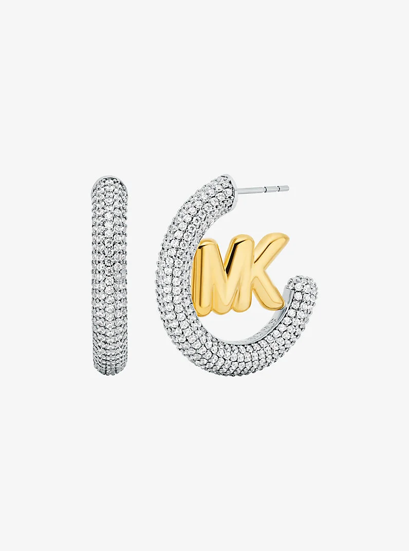 These radiant earrings are a modern twist on the classic hoop. Bringing signature style to everyday looks, they feature our MK Pop Charm subtly centered along a shimmering, precious metal-plated band set with cubic zirconia. Wear them solo or stacked alongside similar styles. - Hoop earrings - Gold and silver-tone brass - Cubic zirconia - 0.5”W X 0.5"L - Post/clutch back - Imported - Apply perfume and cosmetics prior to putting on your jewelry. To clean your jewelry, wipe with the soft buffing cloth provided. Keep your jewelry away from moisture as it promotes tarnish. We recommend storing your jewelry in a clean, dry place, such as the pouch that the product comes in. - Style # MKJ8561