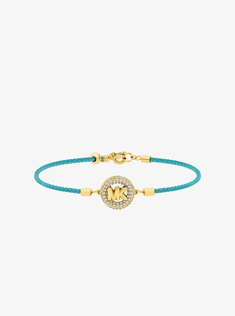 This corded bracelet is an easy addition to your daily rotation. A shimmering pave logo charm delivers just the right amount of shine, while gold-tone hardware offers a subtle polished finish. Wear it alone or stacked with similar styles for a laid-back, layered effect. - Bracelet - Gold-tone brass - Cubic zirconia - 0.53”W X 7.6"L - Spring ring - Imported - Michael Kors jewelry is made of precious metals combined with various elements including semi-precious stones. Apply perfume and cosmetics prior to putting on your jewelry. To clean your jewelry, wipe with the soft buffing cloth provided. Keep your jewelry away from moisture as it promotes tarnish. We recommend storing your jewelry in a clean, dry place, such as the pouch that the product comes in. - Style # MKJ8620