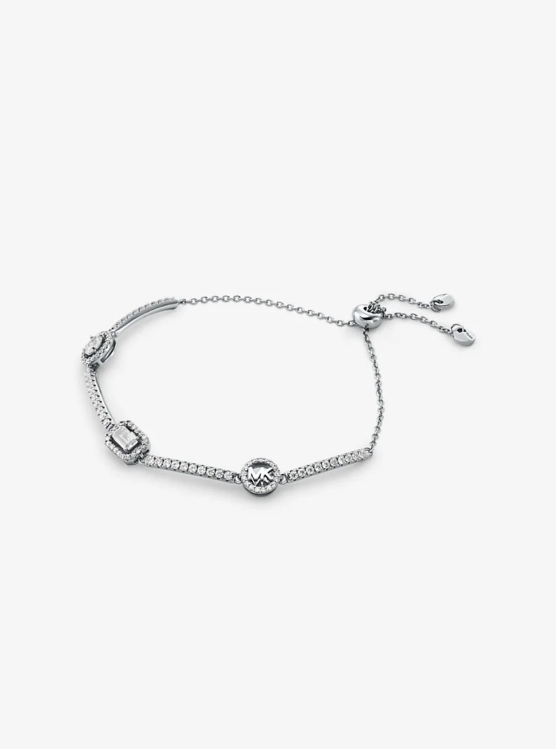 Glittering pave animates this precious metal-plated bracelet, while faceted cubic zirconia and a subtle initial charm lend it scale and drama. Designed with an adjustable clasp, it looks gorgeous worn solo or with a stack of bangles. - Bracelet - Sterling silver - Available in: rhodium plating - Cubic zirconia - 0.33" X 0.25" inner circumference - Slider clasp - Imported - Michael Kors jewelry is made of precious metals combined with various elements including semi-precious stones. Apply perfume and cosmetics prior to putting on your jewelry. To clean your jewelry, wipe with the soft buffing cloth provided. Keep your jewelry away from moisture as it promotes tarnish. We recommend storing your jewelry in a clean, dry place, such as the pouch that the product comes in. - Style # MKC1715CZ