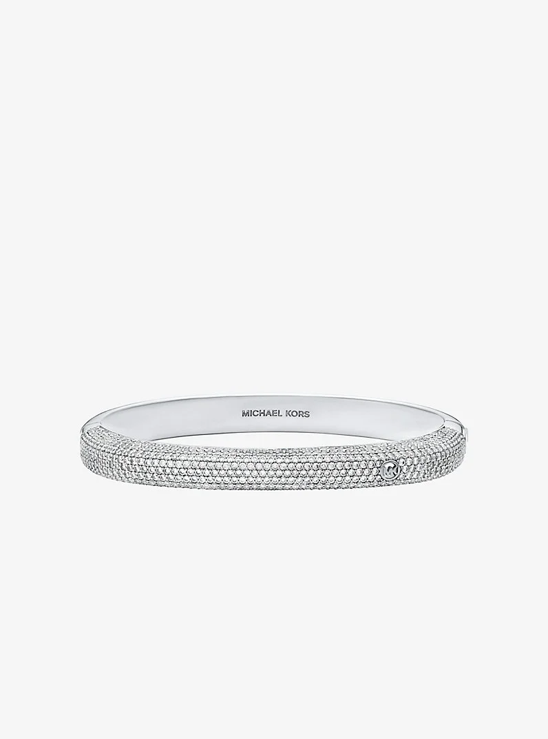 Dazzling and sculptural, this precious metal–plated brass bangle is defined by its tapered square design and shimmering pave accents. Slip it on to add touch of sparkle to your ensemble. - Bangle - Silver-tone brass - Cubic zirconia - 0.3”W X 6.6"L - Push-button fastening - Imported - Michael Kors jewelry is made of precious metals combined with various elements including semi-precious stones. Apply perfume and cosmetics prior to putting on your jewelry. To clean your jewelry, wipe with the soft buffing cloth provided. Keep your jewelry away from moisture as it promotes tarnish. We recommend storing your jewelry in a clean, dry place, such as the pouch that the product comes in. - Style # MKJ8599