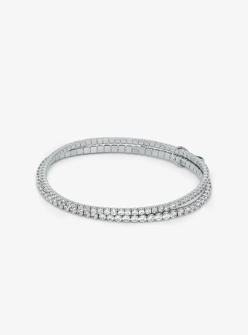 Timeless with a touch of the contemporary, this metal-plated brass tennis bracelet is strung with two strands set with a dazzling array of cubic zirconia. The elasticated design allows you to slip it on and off with ease. Layer yours over the cuff of your favorite shirt. - Bracelet - Brass - Available in: 14K gold plating, platinum plating - Cubic zirconia - Chain: 16.4”L - Slip on - Imported - Michael Kors jewelry is made of precious metals combined with various elements including semi-precious stones. Apply perfume and cosmetics prior to putting on your jewelry. To clean your jewelry, wipe with the soft buffing cloth provided. Keep your jewelry away from moisture as it promotes tarnish. We recommend storing your jewelry in a clean, dry place, such as the pouch that the product comes in. - Style # MKJ8359CZ