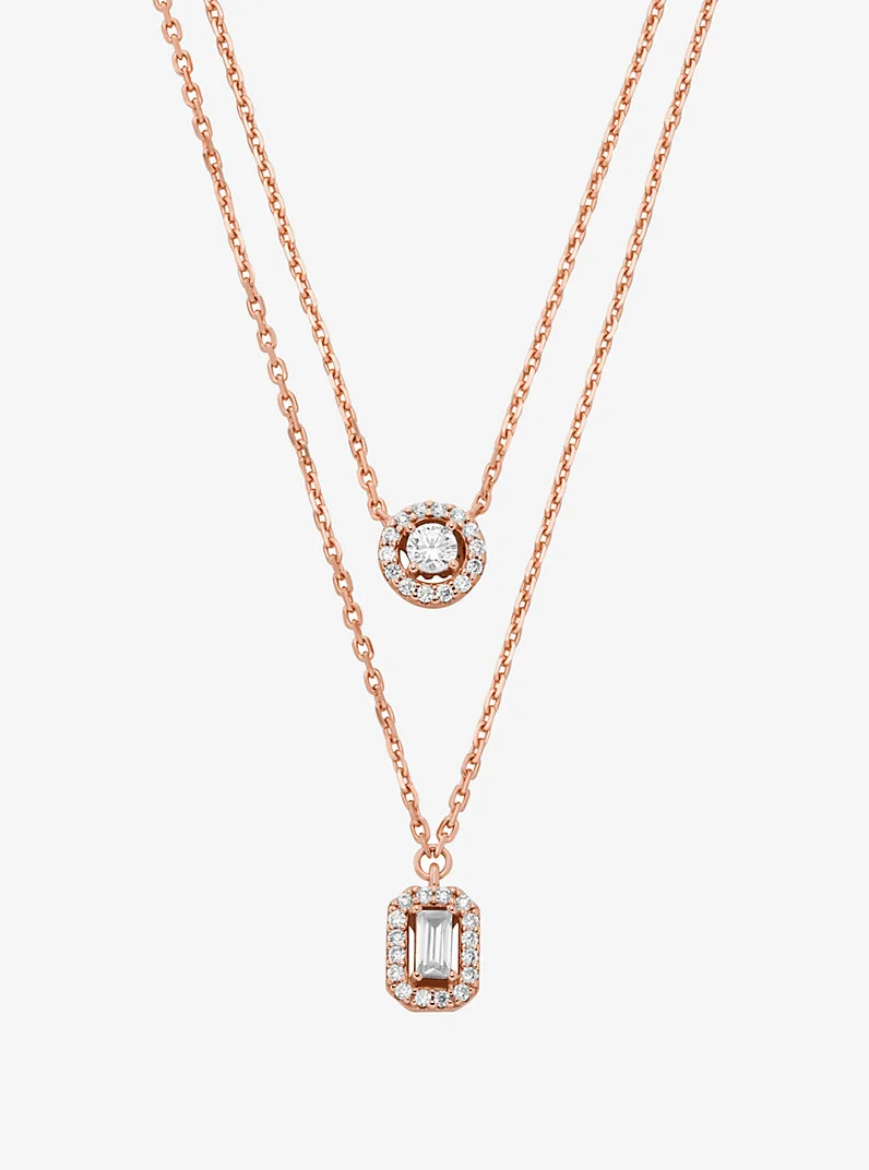 This elegant necklace is just what you need when the occasion calls for a touch of sparkle. Suspended by delicate silver-tone chains, the two glistening cubic zirconia stones are surrounded by pave halos for a dazzling effect. Add it to every ensemble from cocktail dresses to crisp button-up shirts. - Necklace - Sterling silver - Available in: rhodium plating - Chain: 13.5”L + 2" extender - Spring clasp - Imported - Michael Kors jewelry is made of precious metals combined with various elements including semi-precious stones. Apply perfume and cosmetics prior to putting on your jewelry. To clean your jewelry, wipe with the soft buffing cloth provided. Keep your jewelry away from moisture as it promotes tarnish. We recommend storing your jewelry in a clean, dry place, such as the pouch that the product comes in. - Style # MKC1745CZ
