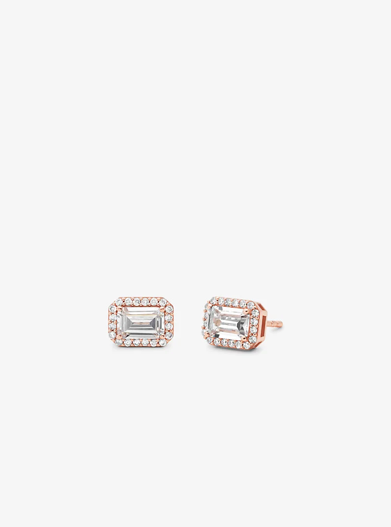 Cast from precious-metal plated sterling silver, these stud earrings are set with emerald-cut cubic zirconia outlined with sparkling pave. The simple design is perfect for everyday wear. They’ll pair effortlessly with a coordinating necklace or bracelet from our collection. - Stud earrings - Sterling silver - Available in: 14K rose gold plating - Cubic zirconia - 0.56”L X 0.7”W - Post/clutch back - Imported - Michael Kors jewelry is made of precious metals combined with various elements including semi-precious stones. Apply perfume and cosmetics prior to putting on your jewelry. To clean your jewelry, wipe with the soft buffing cloth provided. Keep your jewelry away from moisture as it promotes tarnish. We recommend storing your jewelry in a clean, dry place, such as the pouch that the product comes in. - Style # MKC1724CZ