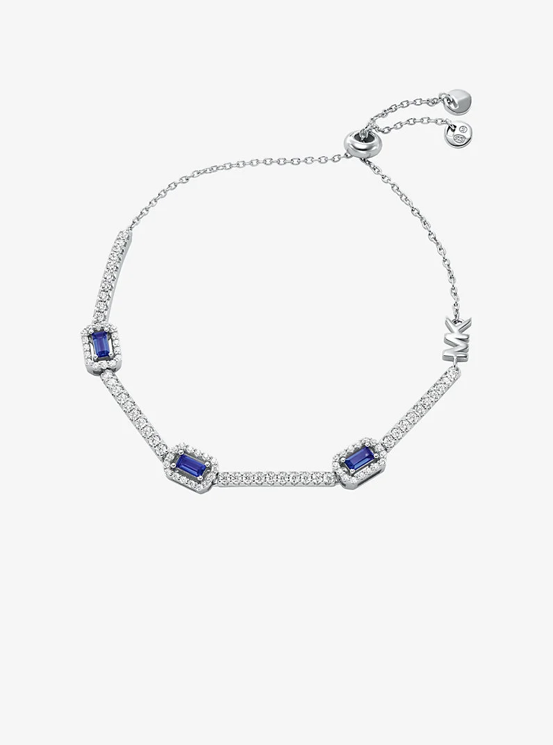 Glamorous by design, this sterling silver bracelet shines with pave accents and emerald-cut cubic zirconia charms in a bold, eye-catching hue. Wear it solo or layer yours with similar styles from our collection.Glamorous by design, this sterling silver bracelet shines with pave accents and emerald-cut cubic zirconia charms in a bold, eye-catching hue. Wear it solo or layer yours with similar styles from our collection. - Slider bracelet - Sterling silver - Available in: rhodium plating - Cubic zirconia - 0.22” inner circumference - Slider clasp - Imported - Michael Kors jewelry is made of precious metals combined with various elements including semi-precious stones. Apply perfume and cosmetics prior to putting on your jewelry. To clean your jewelry, wipe with the soft buffing cloth provided. Keep your jewelry away from moisture as it promotes tarnish. We recommend storing your jewelry in a clean, dry place, such as the pouch that the product comes in. - Style # MKC1821