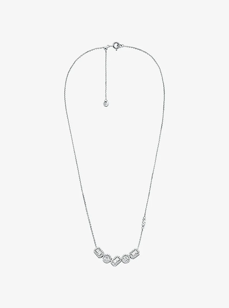 Glistening cubic zirconia in a mix of shapes define this metal-plated sterling silver necklace. Finished with a delicate adjustable chain and slider closure, it’s designed to sit perfectly at any length. Style it with collared shirts and low necklines to let it shine. - Necklace - Sterling silver - Available in: rhodium plating - Cubic zirconia - Chain: 18"L - Spring ring clasp - Imported - Michael Kors jewelry is made of precious metals combined with various elements including semi-precious stones. Apply perfume and cosmetics prior to putting on your jewelry. To clean your jewelry, wipe with the soft buffing cloth provided. Keep your jewelry away from moisture as it promotes tarnish. We recommend storing your jewelry in a clean, dry place, such as the pouch that the product comes in. - Style # MKC1840