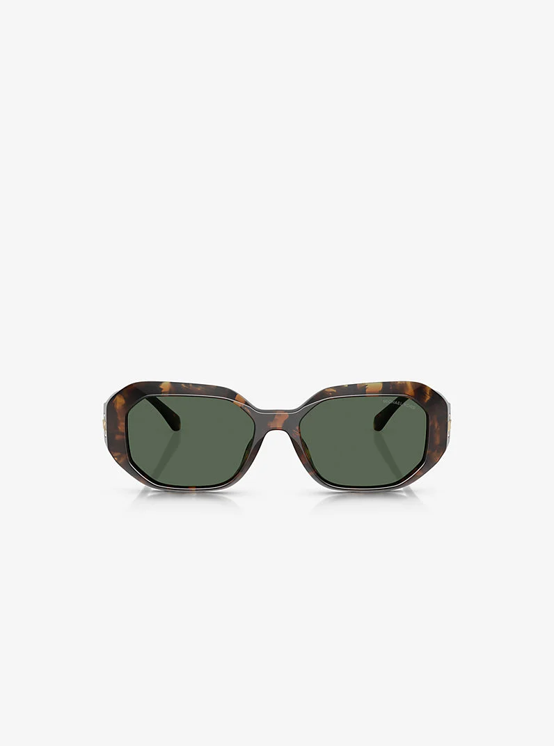 Our Siesta Key sunglasses were made to flatter with a softly squared shape and bold frames. A logo charm detail on each side adds a touch of signature shine. - Irregular sunglasses - Plastic frame - Case included - 100% UV protection - Imported - Style # MK-2240U