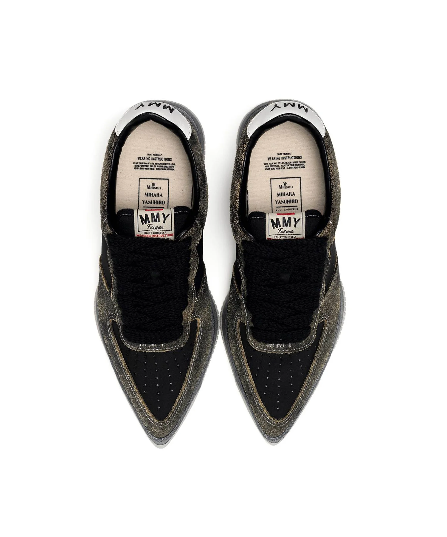 【2025 Autumn/Winter Collection】 "ROSY" OG Sole Mix Material Low-top Sneaker Sneakers featuring the brand's original sole. "ROSY" model. Pointed toe. Mixed-material upper crafted from vintage-processed suede and nylon. *Please note that the JP and US size indications are merely approximate size references. ※Product images may appear different from the actual item due to lighting conditions during photography or variations in monitor settings. ※Some photos feature sample items; actual products may differ slightly in finish or sizing. ※Color, texture, and specifications may vary slightly due to differences in production timing or individual characteristics of each piece. We appreciate your understanding. - Item No: B15FW702 - Brand: Maison MIHARA YASUHIRO - Category: EVERYONE » SHOES » SNEAKERS - Season: 2025 A/W - Material: UPPER : COW LEATHER NYLON SOLE : RUBBER - Made In: CHINA