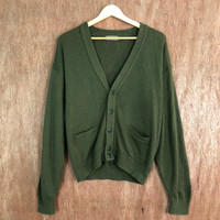 Cardigan - Plain Green Knit Cardigan Like Kurt Cobain