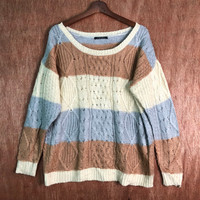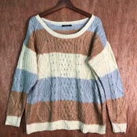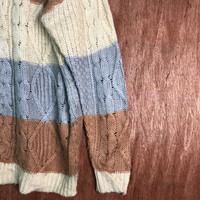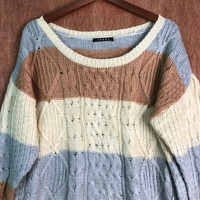 Coloured Cable Knit Sweater - Ingni Crocheted Multicolor Knit Sweater