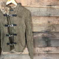 Coloured Cable Knit Sweater - Misch Masch Cardigan With Metal Clip Knitwear Sweater