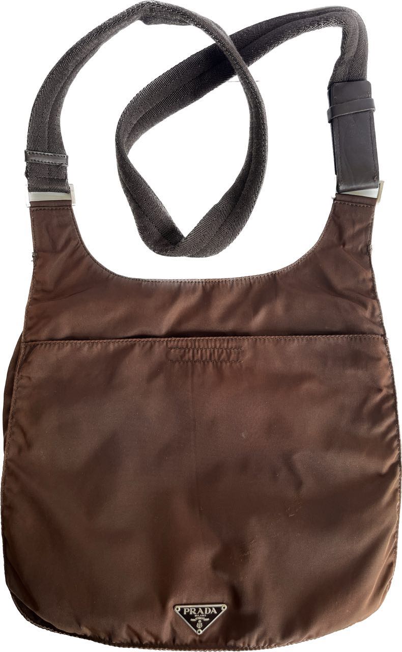 WELCOME FOLLOW ME AND THANK YOU CHECK MY OTHER ITEMS -Description- Tags brand : Prada Style : Crossbody Bag Material : Nylon Color : Dark Brown Size : L Zipper : Lampo Size in inches Please contact us for any questions. Thanks you very much for watching my item.. Thank you