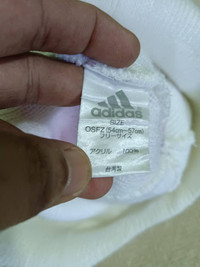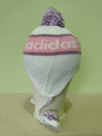 DESCRIPTION OF PRODUCT Product Name : Adidas Beanie (SC04) Product Type : Beanie Estimated Size : i. Height : 11 Inches (Full Without Bend) ii. Radius : 11 Inches iii. Size on tag : 54cm - 57cm Main Colour : White / Pink Product Condition / Defect : i. Used Item with good condition. ii. Fabric look like hairy. Term : i. The product has been used or worn previously and some places have dirt marks due of used. Please don't expect it to be like new or in pristine condition. Please see picture carefully ii. Please leave your phone number when purchasing for me to use in shipping information. Don't forget to check out my store for MORE STUFF!! Thank you so much for your visit. Negotiable with reasonable.