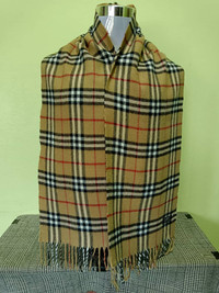 DESCRIPTION OF PRODUCT Product Name : Burberrys Lambswool Nova Check Muffler (MFS20) Product Type : Muffler Estimated Size : i. Width : 12 Inches ii. Length : 64 Inches Fabric Material : Lambswool Colour / Design : Light Brown Product Condition / Defect : i. Used Item with good condition. Term : i. The product has been used or worn previously and some places have dirt marks due of used. Please don't expect it to be like new or in pristine condition. Please see picture carefully ii. Please leave your phone number when purchasing for me to use in shipping information. Don't forget to check out my store for MORE STUFF!! Thank you so much for your visit. Negotiable with reasonable.