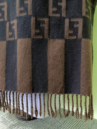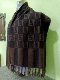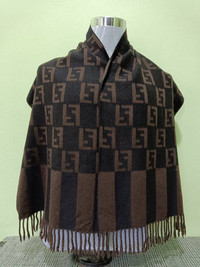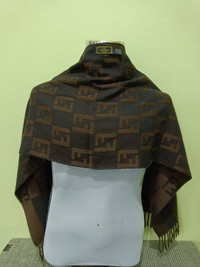 DESCRIPTION OF PRODUCT Product Name : Fendi Mufflers (MFS01) Product Type : Mufflers Estimated Size : i. Width : 12 Inches ii. Length : 59 Inches Fabric Material : Lana / Wool Colour / Design : Brown / Monogram Product Condition / Defect : i. Used Item with good condition.