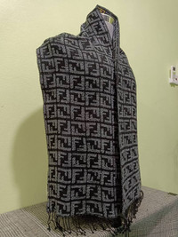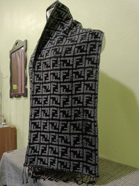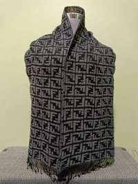 DESCRIPTION OF PRODUCT Product Name : Fendi Mufflers (MFS11) Product Type : Mufflers Estimated Size : i. Width : 13 Inches ii. Length : 67 Inches Fabric Material : Acrylic / Elastane Colour / Design : Grey / Black Product Condition / Defect : i. Used Item with good condition.