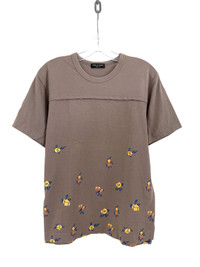 Beautiful painted flower motif throughout. More grey than the pics show, 2 textured cottons on here as well. No tagged size but fits around a Japanese M. Condition: Worn with no flaws Based out of Toronto, Canada. Check out our other listings for more great pieces and follow our seller page to get updated whenever we post a new item