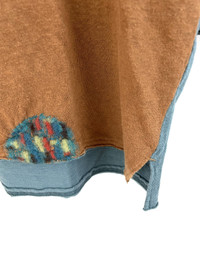 Fuzzy patches. V-neck with 3/4 sleeves. Condition: Worn with no flaws Based out of Toronto, Canada. Check out our other listings for more great pieces and follow our seller page to get updated whenever we post a new item