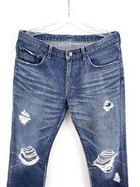 Blowed out knees, classic Pain details throughout including RiRi zip. Condition: Worn with no flaws besides a spot on the front, pictured Based out of Toronto, Canada. Check out our other listings for more great pieces and follow our seller page to get updated whenever we post a new item
