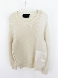 Mohair, wool, and nylon. Beautiful colour on this. Neck tag is coming unstitched. Condition: Worn with a small pull in the knit, pictured Based out of Toronto, Canada. Check out our other listings for more great pieces and follow our seller page to get updated whenever we post a new item