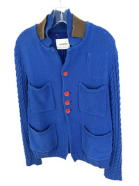 It's a sweater, it's a jacket, it's a crazy, crazy hybrid of the two. Huge pockets on the front as well as a pocket inside that you can see from the outside, top left. Condition: Worn with some wear by the collar, nothing major at all though Based out of Toronto, Canada. Check out our other listings for more great pieces and follow our seller page to get updated whenever we post a new item