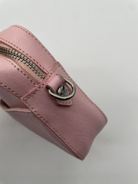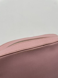 Pink leather. Measurements: Width: 7.5 inches Height: 5.5 inches Condition: Worn with spots pictured Based out of Toronto, Canada. Check out our other listings for more great pieces and follow our seller page to get updated whenever we post a new item