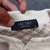 YOHJI YAMAMOTO SACSNY Y'SACCS SWEATSHIRT SIZE M (P67CMXL54CM) NO HOLE THERE ARE SLIGHT STAINS HAVE NOT BEEN WASHED THERE ARE SLIGHT SCRATCHES BUT THEY DON'T GO THROUGH THE RUBBER DOES NOT STRETCH OR GET DAMAGED THE MATERIAL IS A BIT HAIRY