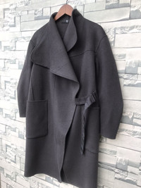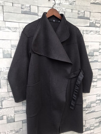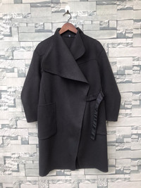 +J Uniqlo Wool Blend Oversized Wrap Coat - XS (Fits M) Black