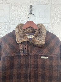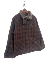 Japanese Brand - 90s Kansai Yamamoto Kansai Jeans Fur Collar Plaid Jacket