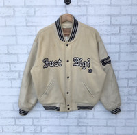 Vintage 90s Just Bigi Leather Sleeve Varsity Jacket - Rare