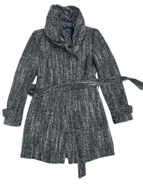 ZARA Herringbone Belted Overcoat High Collar hick Wool Blend