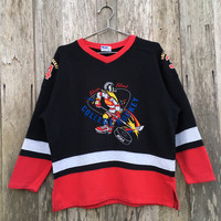 Size : - L(Refer Measurement) MEASUREMENT Pit to pit : 24 INCH(Armpit To Armpit) Length : 27 INCH(Back Collar To Bottom Hem) CONDITION - 8/10 See Picture For Detail PAYMENT We accept Paypal only. The item will be sent within 2-5 days after payment is completed. SHIPPING Transit time can take 14-21(economy) days to reach destination. Please note that the item is in Malaysia and may take longer time delivery. REFUNDS Refunds Are Given Only If Items Are Not As Described. No Refunds For Wrong Sizes So Please Check And Compare Measurements To Something You Own Before Bidding. Most Of My Items Are Vintage/Used Items, So Please Check Pictures And Ask Questions. Thank You. I have more than 500++ items.You also can buy bulk but please offer me reasonable price.