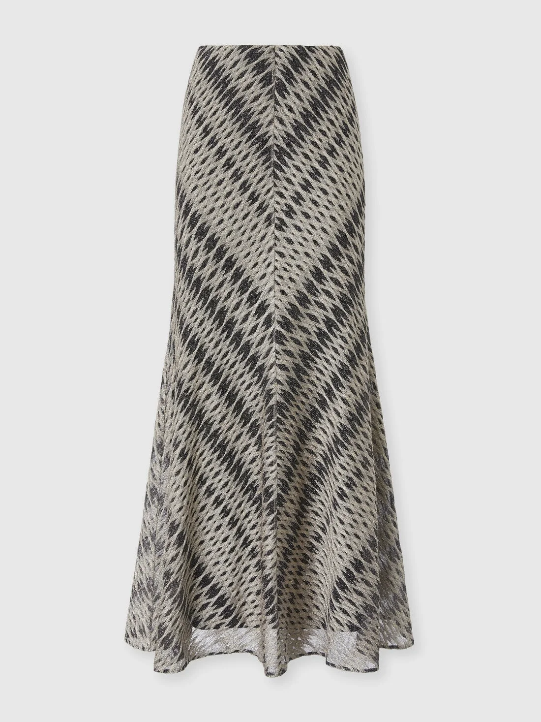 MORE DETAILS - Women's flared long skirt - Raschel knit with 3D diamond pattern - Viscose lame blend Composition: EXTERNAL:58%Rayon, 28%Metal Fiber, 14%Polyamide; LINING : 82%Polyester, 18%Elastane Care instructions: Ironing maximum temperature 110°C - without steam ; Dry cleaning in tetrachloroethene - mild process ; Dry flat ; Do not tumble dry ; Do not wash ; Do not bleach Made in: Italy Product ID DS26SH17BR014VS91RO