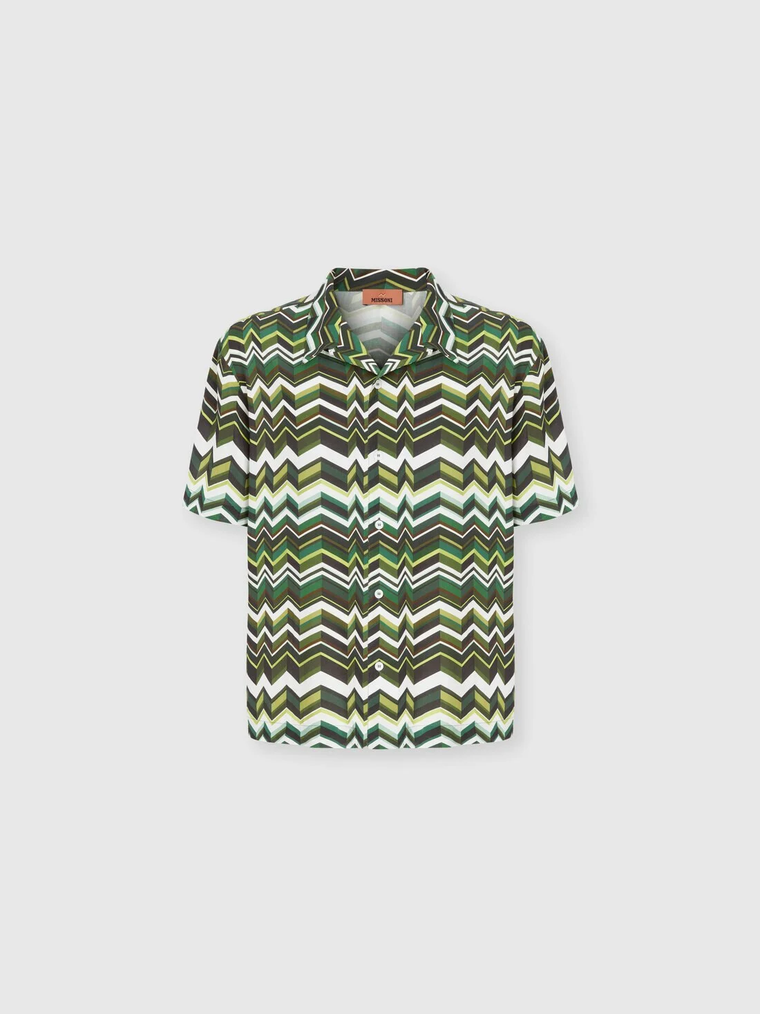 Missoni experiments with new forms and graphics, creating this men’s bowling shirt in 100% viscose, animated by an irregular zigzag print. A piece that combines the relaxed spirit of the style with the Maison’s bold and unmistakable aesthetic. MORE DETAILS - Men’s bowling shirt - Short sleeves - Irregular zigzag print - 100% viscose Composition: EXTERNAL:100%Rayon Care instructions: Wash max 30°C - Mild process ; Ironing maximum temperature 110°C - without steam ; Wash inside out ; Do not tumble dry ; Iron inside out ; Do not dry clean ; Do not bleach Made in: Tunisia Product ID BS26SJ01BW00ZVS6165