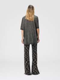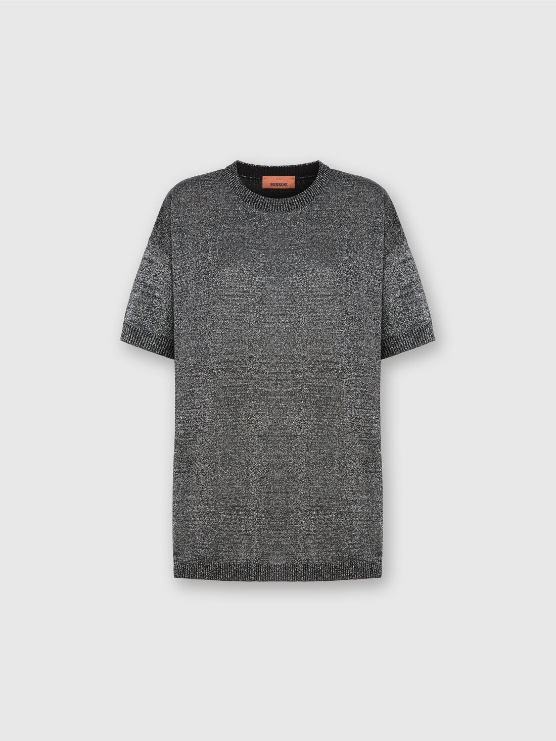 Boxy short-sleeve crew-neck women’s sweater, characterized by refined vanise workmanship that enriches the garment with an elegant texture. Lame threads sprinkle the surface, adding shine and a touch of brilliance, for a sophisticated and modern look that expresses all of Missoni’s mastery in the details. MORE DETAILS - Boxy crew neck short-sleeve sweater - Vanise knit - Viscose blend with lame threads Composition: EXTERNAL:88%Rayon, 12%Metal Fiber Care instructions: Dry cleaning in tetrachloroethene - mild process ; Ironing maximum temperature 110°C - without steam ; Dry flat ; Iron inside out ; Dry inside out ; Do not tumble dry ; Iron with a cloth between ; Do not wash ; Do not bleach Made in: Romania Product ID DS25WN04BK01BYL905D