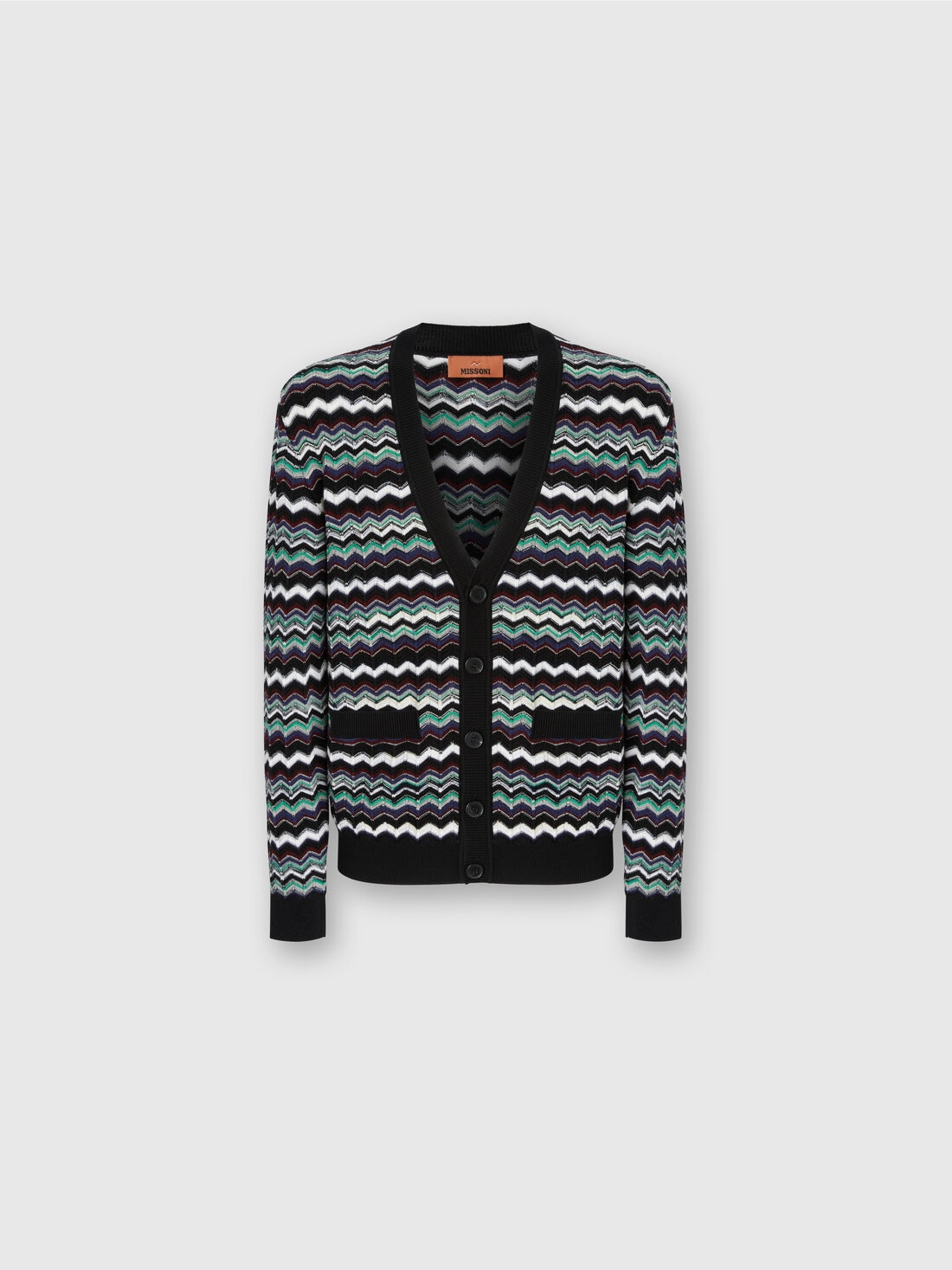 Iconic and timeless, this men’s button-up cardigan by Missoni is made from a soft wool and cotton blend. The striped zigzag motif, a distinctive trait of the maison, enlivens the knit with rhythm and movement, giving the garment unmistakable graphic elegance. MORE DETAILS - Cardigan with buttons - Zigzag stripes with contrast trims - Wool and cotton blend Composition: EXTERNAL:73%Wool, 27%Cotton Care instructions: Ironing maximum temperature 110°C - without steam ; Hand wash ; Dry cleaning in tetrachloroethene ; Do not tumble dry ; Dry flat ; Do not bleach Made in: Italy Product ID US25WM0KBK01CUS72MF