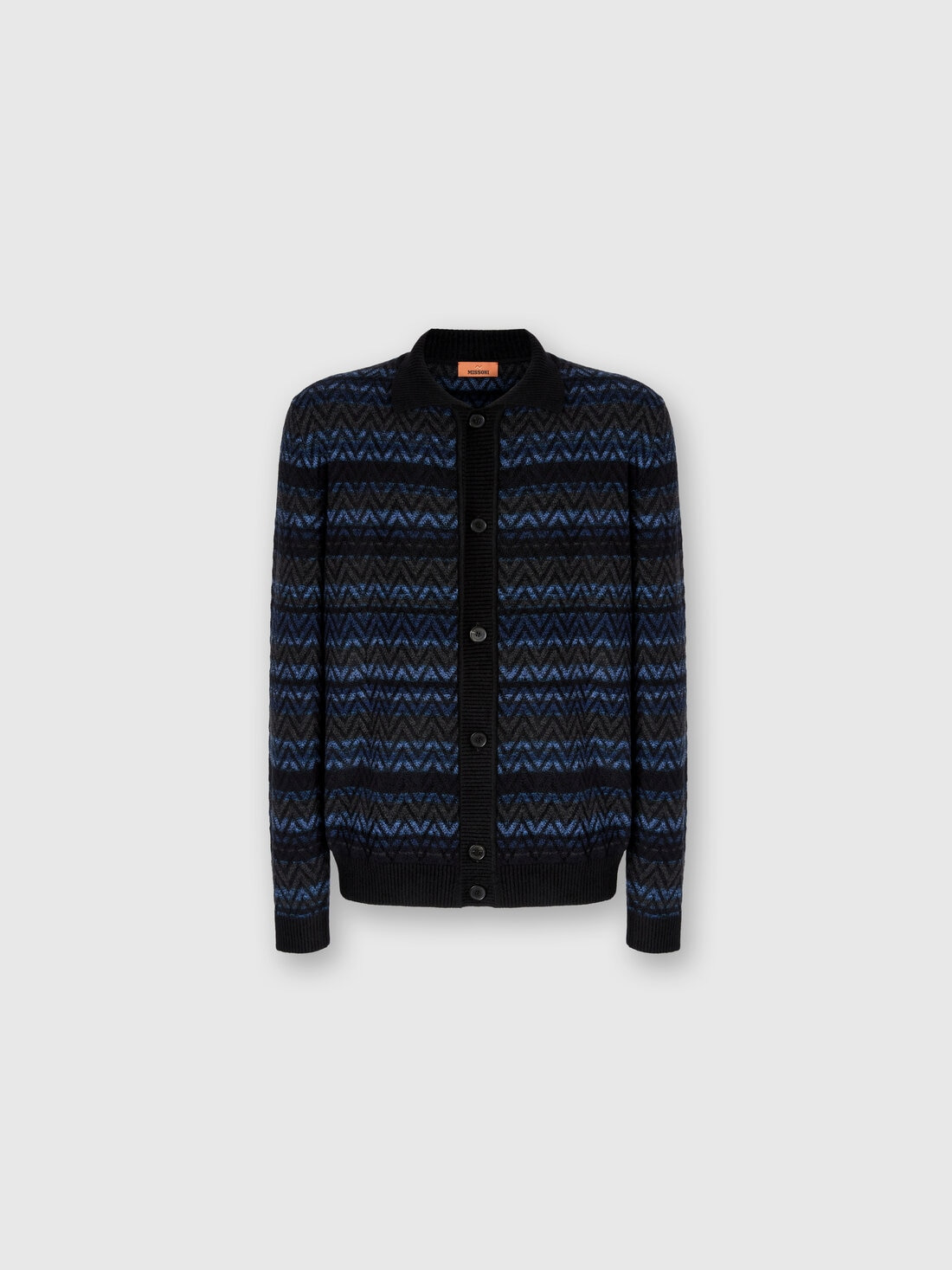 With a bold and contemporary aesthetic, this men’s zigzag cardigan features a vibrant motif that plays with color contrasts. The collar and buttons add a touch of refinement, while the contrasting trims and alternating stripe pattern complete the design with a dynamic and distinctive touch. MORE DETAILS - Cardigan with buttons and collar - Zigzag and stripe pattern - Wool blend Composition: EXTERNAL:42%Wool, 30%Rayon, 28%Polyamide Care instructions: Ironing maximum temperature 110°C - without steam ; Hand wash ; Dry cleaning in tetrachloroethene - mild process ; Do not tumble dry ; Dry flat ; Do not bleach Made in: Italy Product ID US25WM0OBK01DHSM9S0