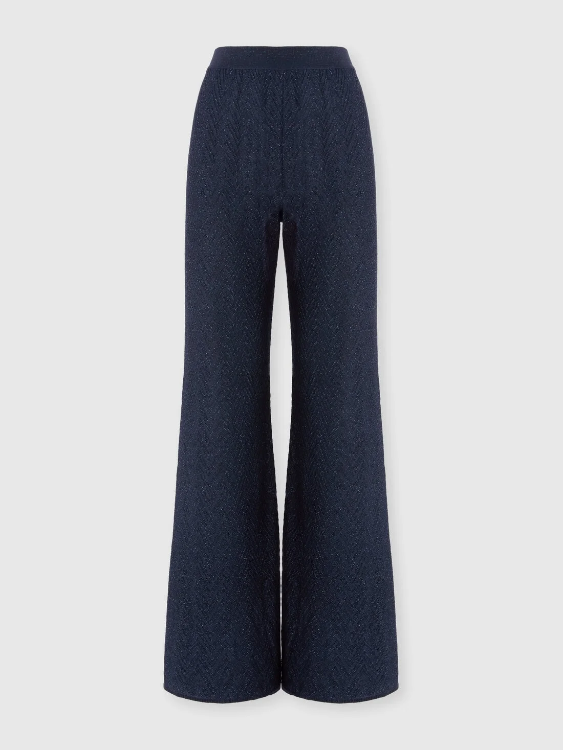 Made from a cotton and viscose blend with lame filaments, these straight-cut women's trousers feature a tone-on-tone zigzag jacquard pattern, a distinctive detail of the Missoni style. MORE DETAILS - Women’s straight trousers - Chevron workmanship - Zigzag pattern - Cotton and viscose blend with lame threads Composition: EXTERNAL:55%Cotton, 30%Rayon, 6%Metal Fiber, 6%Polyester, 2%Polyamide, 1%Elastane Care instructions: Ironing maximum temperature 110°C - without steam ; Hand wash ; Dry cleaning in tetrachloroethene - mild process ; Do not tumble dry ; Dry flat ; Do not bleach Made in: Tunisia Product ID DS25WI13BK01B7S72O5